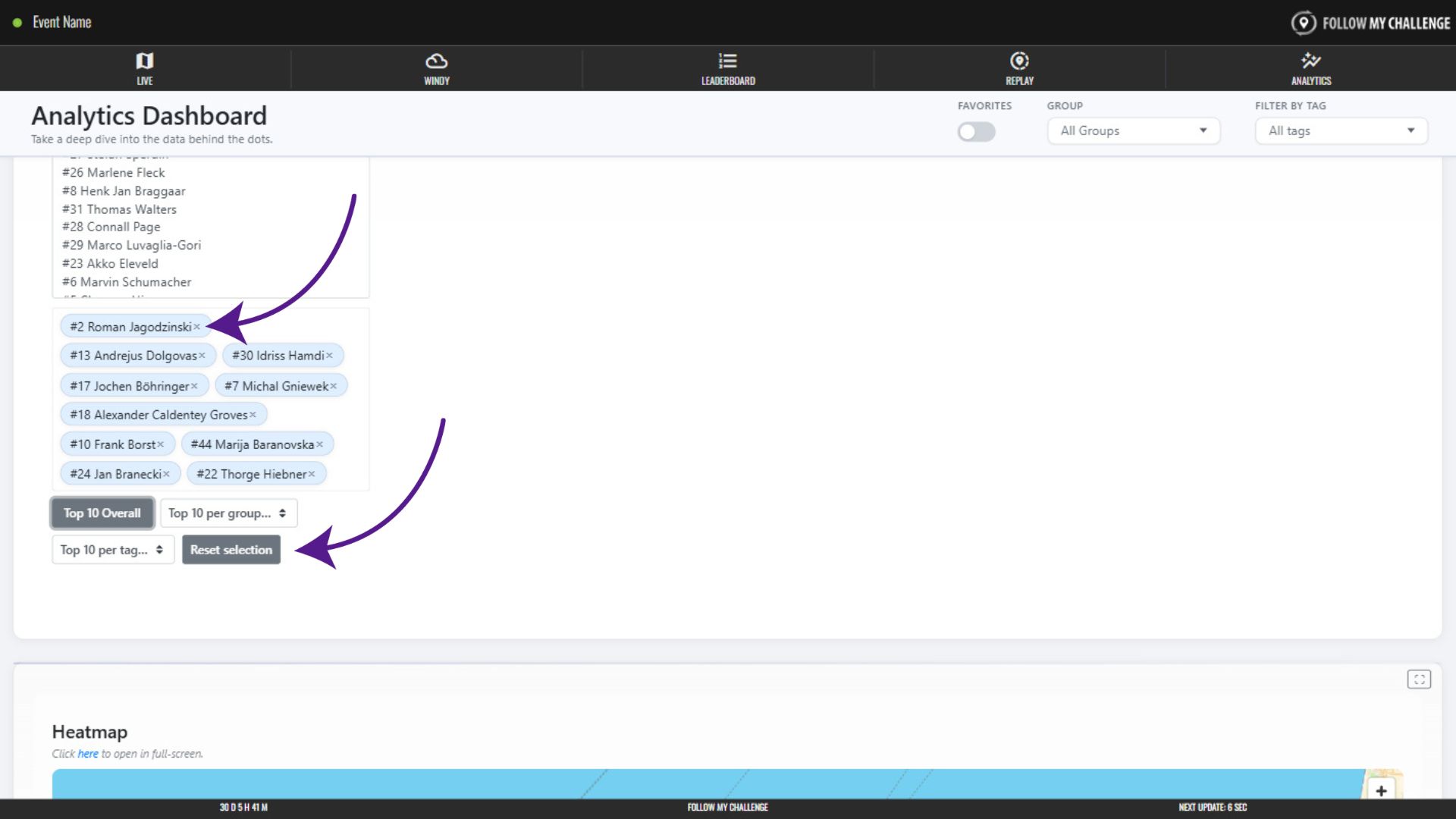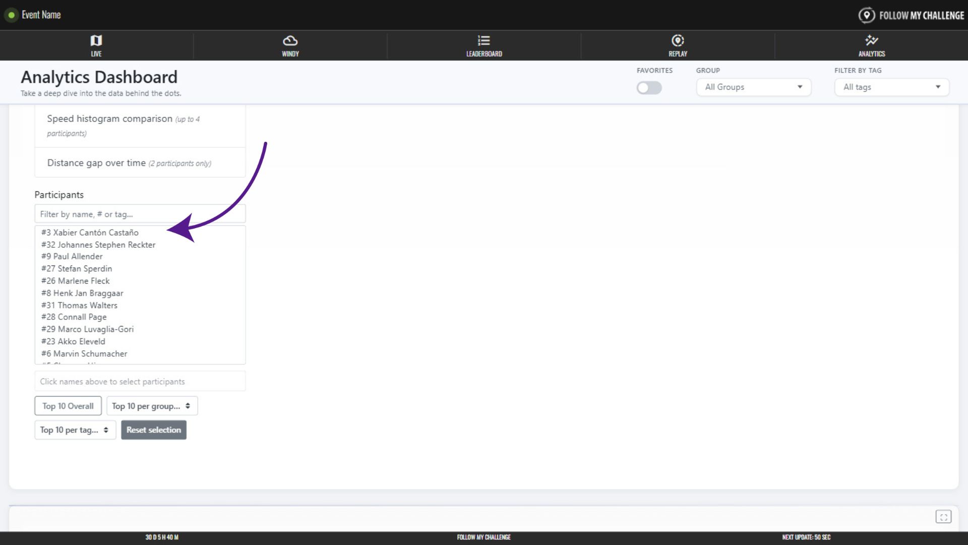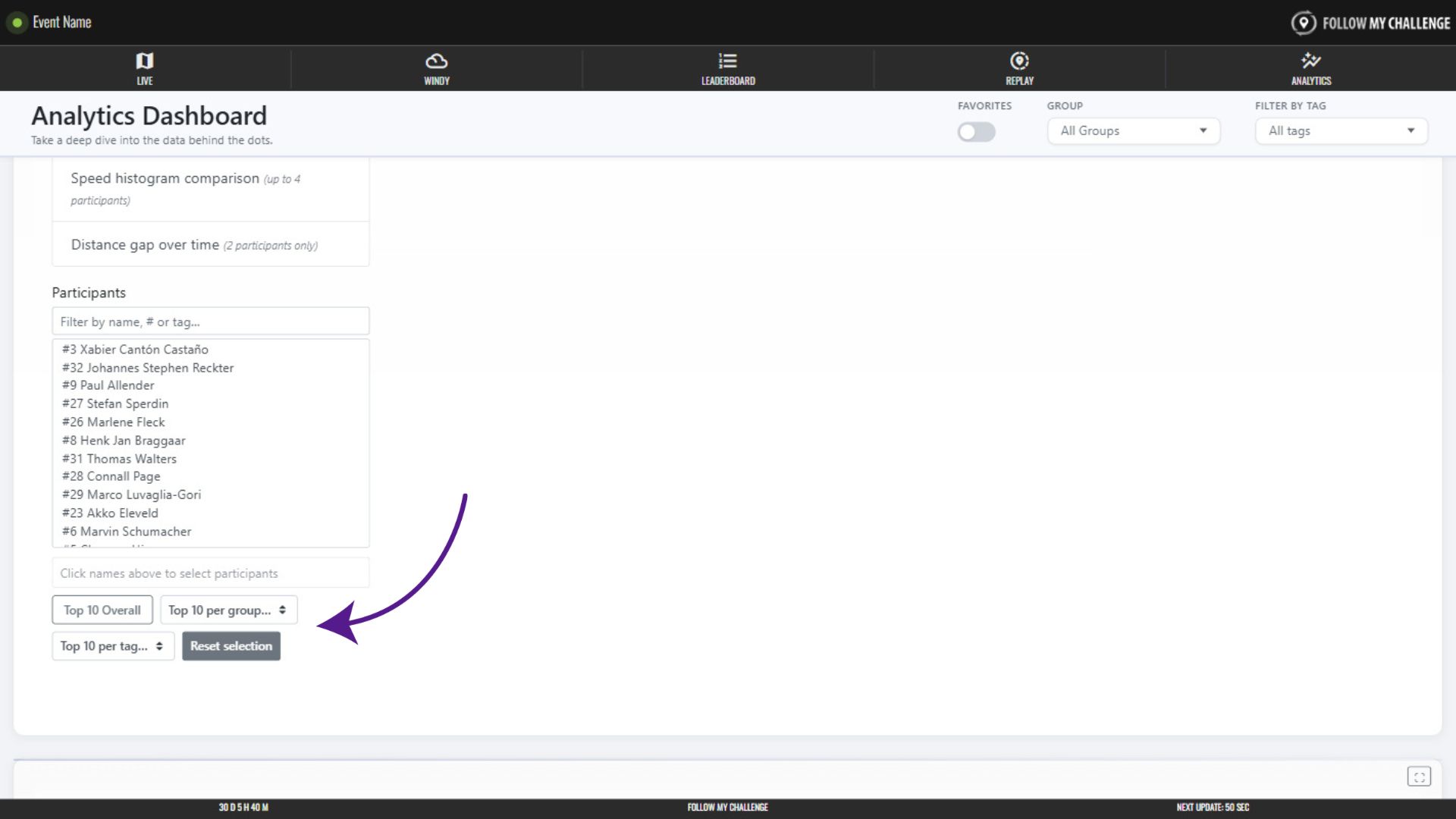 You can also select participants by clicking one of the “top 10” options – allowing you to quickly choose the overall top 10 participants or those within a group or tag.